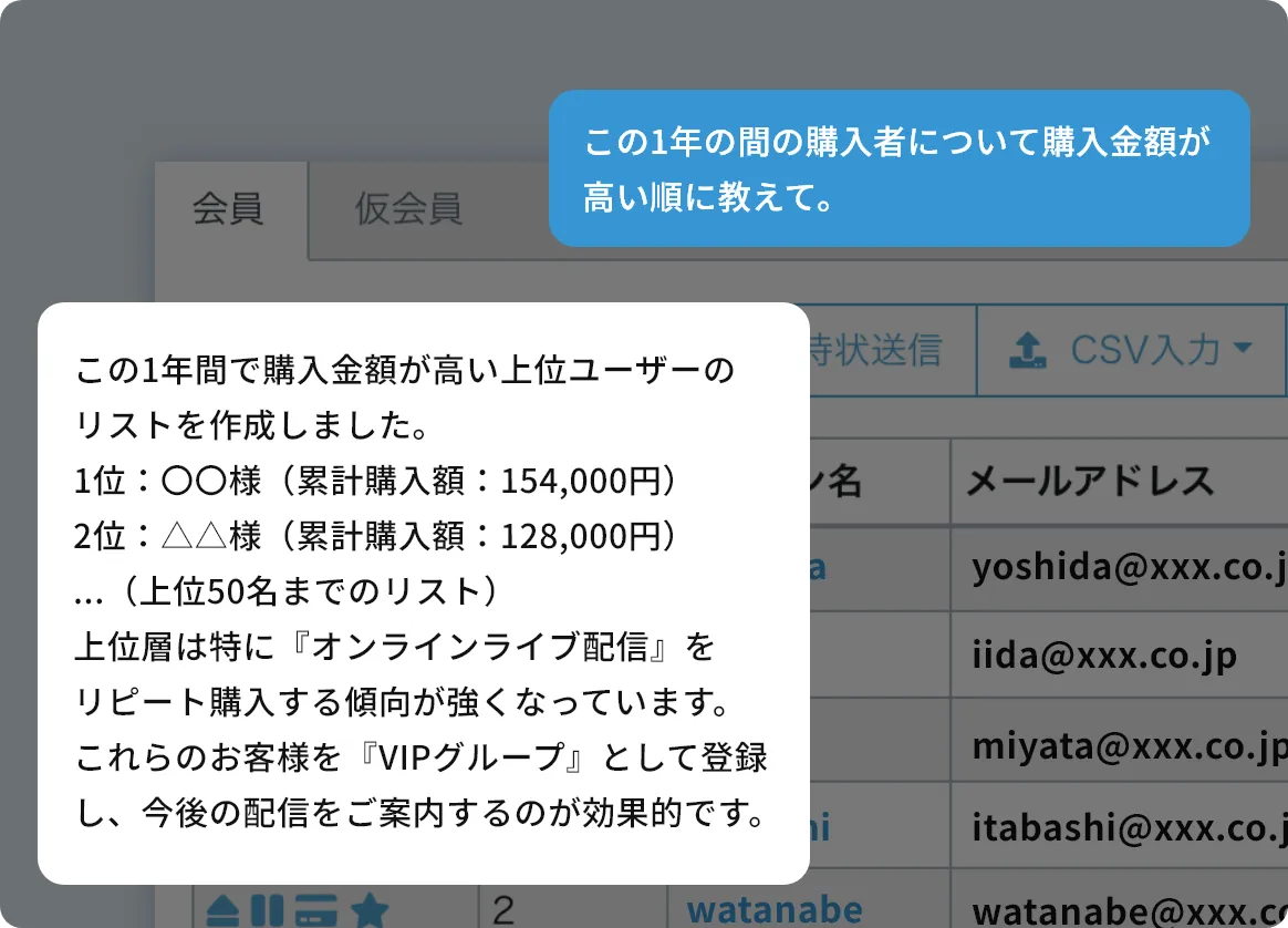「会員情報」「視聴履歴」「販売履歴」をAIが横断的に分析。